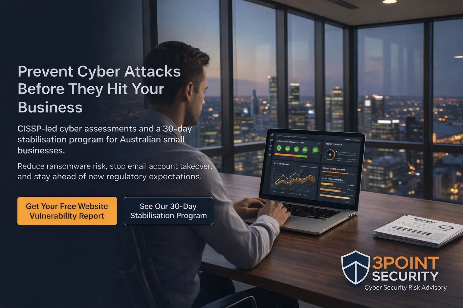 At 3Point Security, we don’t rely on templates. Every business faces unique risks, so your cyber security assessment, risk management, and ongoing protection should always be tailored to fit your needs.